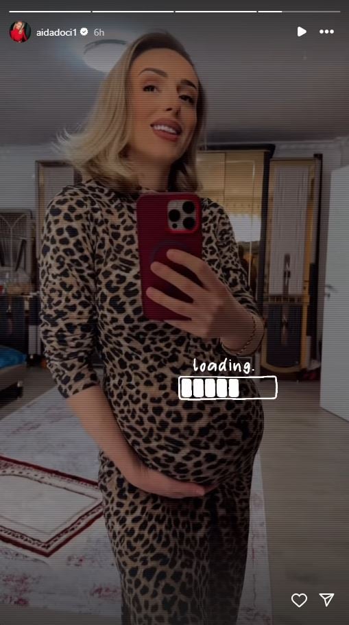 Sot në InstaStory ajo ka publikuar një pamje, përmes së cilës ka ekspozuar barkun e rrumbullakosur.